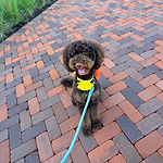 Willow Rose is a chocolate phantom mini goldendoodle with amber color eyes. She is playful and very sweet. She is extremely intelligent and very food motivated. Her favorite part of the day is meal time. She has a bit of sassiness, is very independent and confident. She is 29lbs and approximately 18 inches at her withers